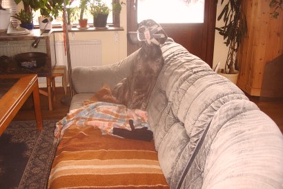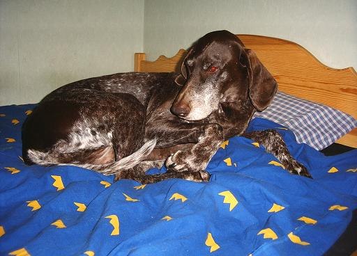 Hon är renrasig Hygien stövare som jag just tagit. Hon är ca 2 år. Hon är liten för rasen och hon är inte så uppfostrad. Hon kommer från ett hem med alkoholproblem och litade inte på någon när hon kom. Men hon har börjat lita på mig nu, ibland kan hon falla tillbaka tillsitt gamla jag och går så fort hon ser en eller om man ropar på henne så sticker hon bara. Men hon har börjat lyssna lite grann och jag kan få röra vid henne nu. Hon är väldigt aktiv hund när hon är ute på gården och leker med de andra hundarna, men inne är hon lung som en filbunke. Självklart är hennes bästa kompis Yerma, det finns inget roligare än att få bli jagad och springa ut i snön och hoppa y snödrivor.